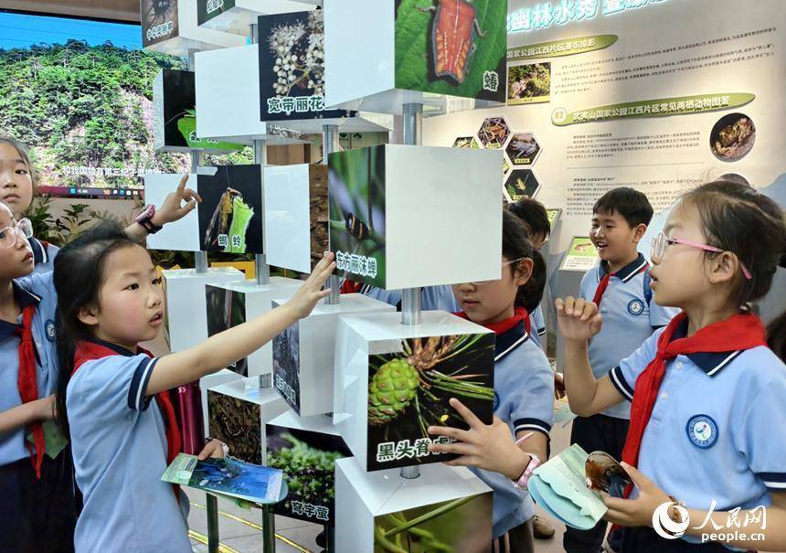 学生们在江西南昌红谷滩区鸿鹄里参观“行走的国家公园”生态文化展。人民网记者 时雨摄人民网南昌4月10日电 (记者时雨)4月10日,“行走的国家公园”——武夷山国家公园江西片区生态文化展在南昌红谷滩区鸿鹄里开展。展览通过静态展示、互动体验与研学实践相结合,普及国家公园理念,提升公众生态保护意识。