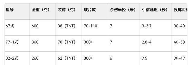 数据对比表 总结       67式手榴弹是中国军事工业在特殊历史条件下的产物,其大规模生产和长期服役体现了“全民皆兵”的战略思想。